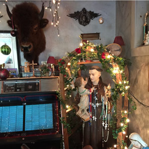 Was Neuigkeiten angeht, so werden viele von Euch wissen, dass ich kürzlich von einem einwöchigen Aufenthalt an einem exotischen Ort zurückgekehrt bin: Buffalo. Was mich an dieser feuchten Stadt im Osten am meisten beeindruckt hat, war das Gras. Gras in Hülle und Fülle, das uns die Natur durch ihre sintflutartigen Regenfälle geschenkt hat, Rasenflächen, die sich ausbreiteten, so weit man sehen konnte, sobald man die Stadt verließ, und jede einzelne wurde gekrönt von einem einsamen Ritter hoch auf seinem Aufsitzrasenmäher, und der Geruch von frisch gemähtem Gras war für mich wie der von Prousts Madeleinekuchen. Ja, ja, ja, ich weiß, dass die Einwohner von Buffalo einen Preis für die grüne Üppigkeit im Sommer zahlen, einen Preis, der sich in Schnee und Eis und Matsch bemisst, aber mir, der auf der Veranda von F. und L.s Haus sitzt, keine zwei Straßen vom prächtigen Darwin-Martin-Haus entfernt, schien es das wert zu sein. Ich paddelte mit dem Kayak auf dem Buffalo River im Schatten verfallener Fabriken und sah, wie sich die Natur wieder durchsetzte, und ich fuhr mit dem Kanu an den Ufern des Ontario-Sees entlang, wo die Natur triumphierte (oder zumindest die Szene beherrschte). Ich besuchte den Talking Leaves Buchladen. Fuhr mit F.s rostfreier Mercedes-Oldtimer-Limousine hinunter nach Springville, wo Frau B. mit ihrer Highschool-Klasse wieder zusammentraf. Habe Chicken Wings gegessen. Habe zugesehen, wie Frau B. ihr Roastbeef im Brötchen verschlungen hat. Speiste bei Faso’s, (siehe das beigefügte Bild, das mir für unser 16-jähriges Jubiläum genügend festlich erschien; lasst uns doch alle zum siebzehnten dort zusammentreffen – oder vielleicht wollt Ihr lieber nach Paris?) Dabei fällt mir ein: Im März werde ich in Paris sein, wegen der Veröffentlichung von Bernard Turles Übersetzung von Hart auf hart, und, noch etwas früher, in den Niederlanden zur Veröffentlichung der niederländischen Übersetzung desselben Romans.